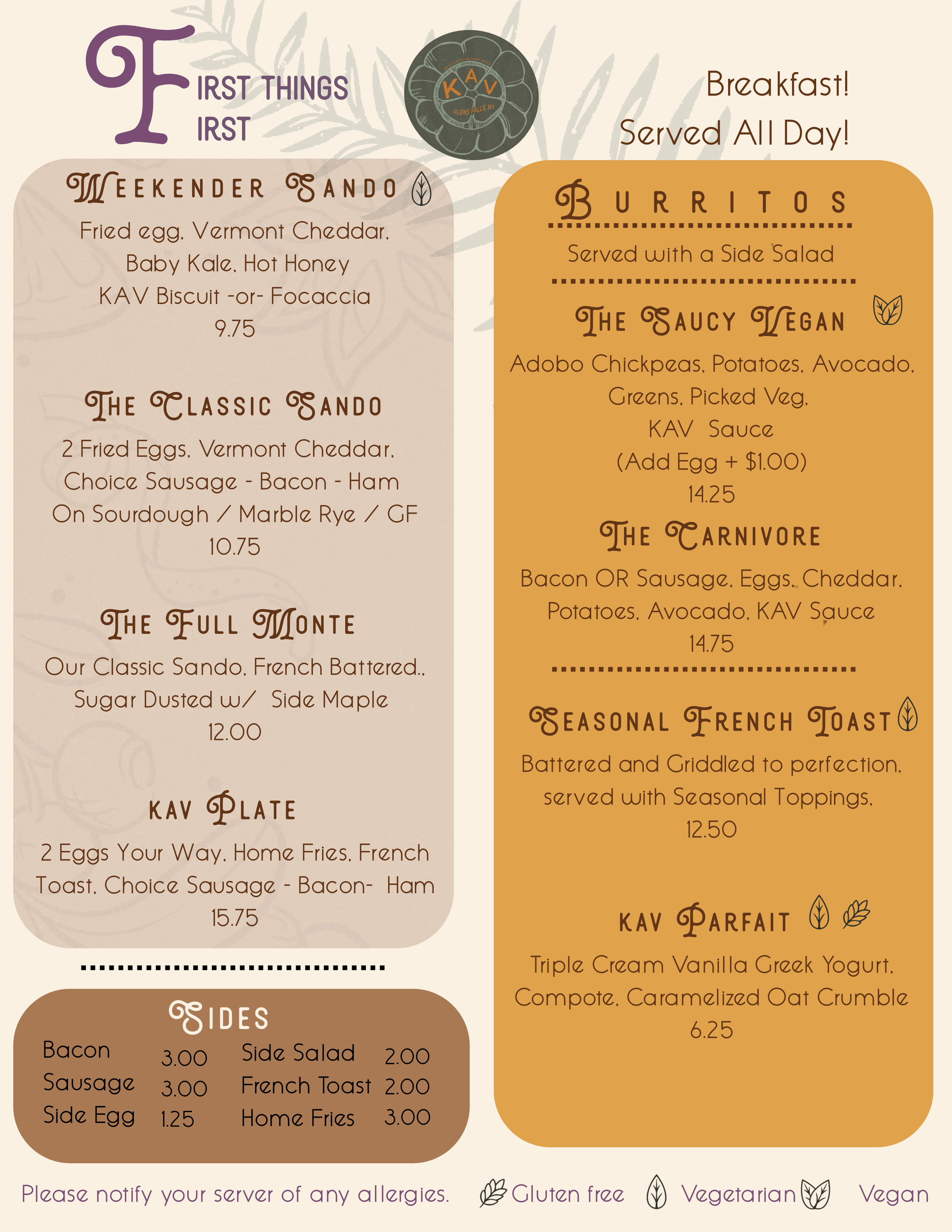 Served Wednesday-Friday